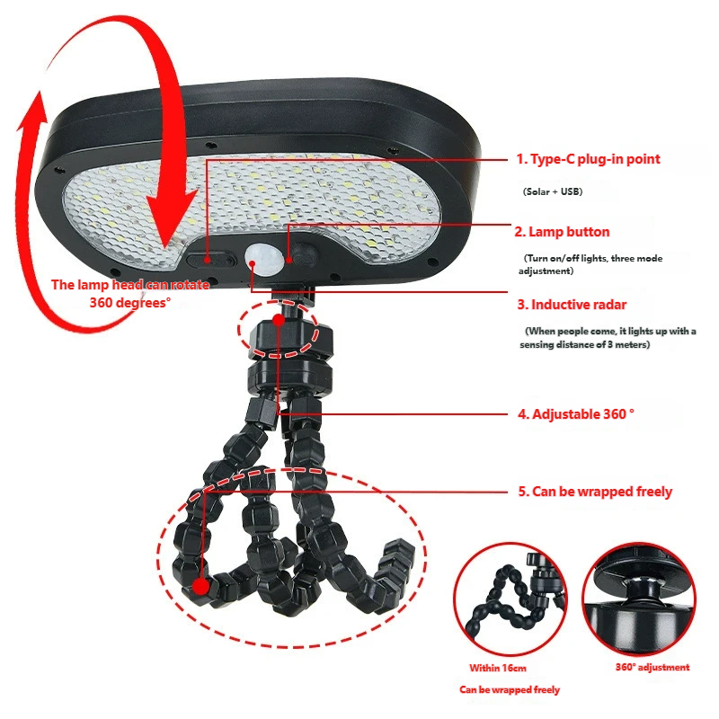 Specification: Solar Octopus Light - White Light (illuminates 30-40 square meters)